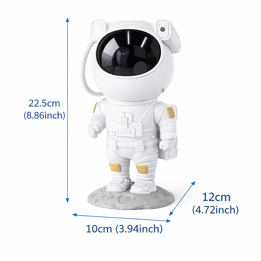 Thanks to the 360° magnetic rotating head, you can project the galaxy exactly where you want — ceiling, walls or across the entire room. When not in use, the astronaut doubles as a stylish decor piece for your desk or TV cabinet.