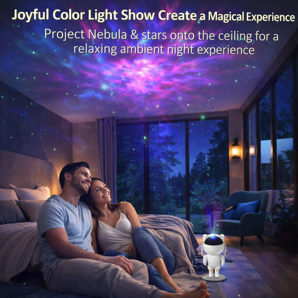 Turn your room into a breathtaking galaxy with the Astronaut Galaxy Projector Night Lamp. Designed as a cute astronaut figurine, this projector beautifully combines functionality with aesthetics. When switched on, it fills your space with mesmerizing nebula clouds and twinkling stars, instantly transforming your bedroom, gaming room, living room, or kids room into a relaxing cosmic sanctuary.